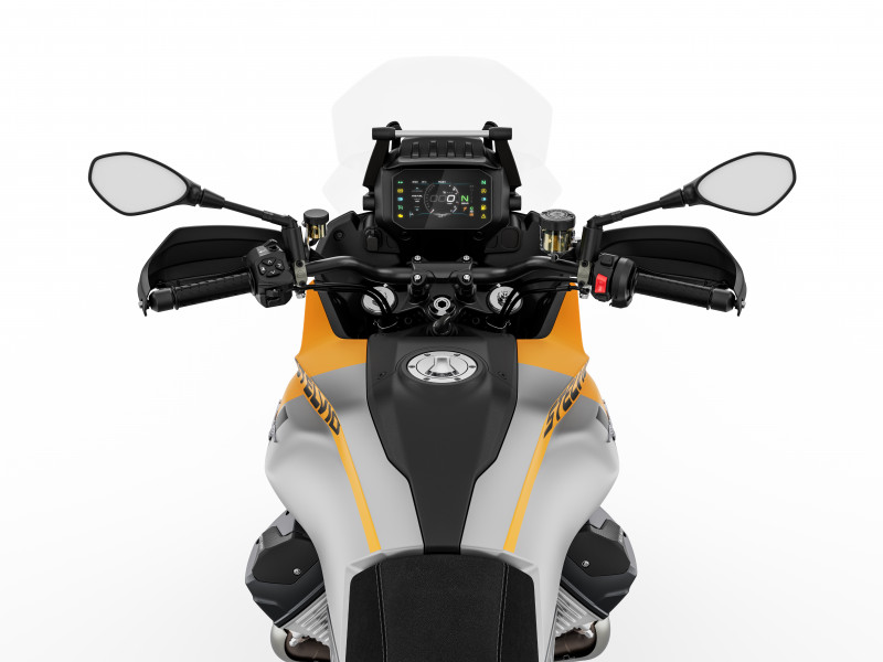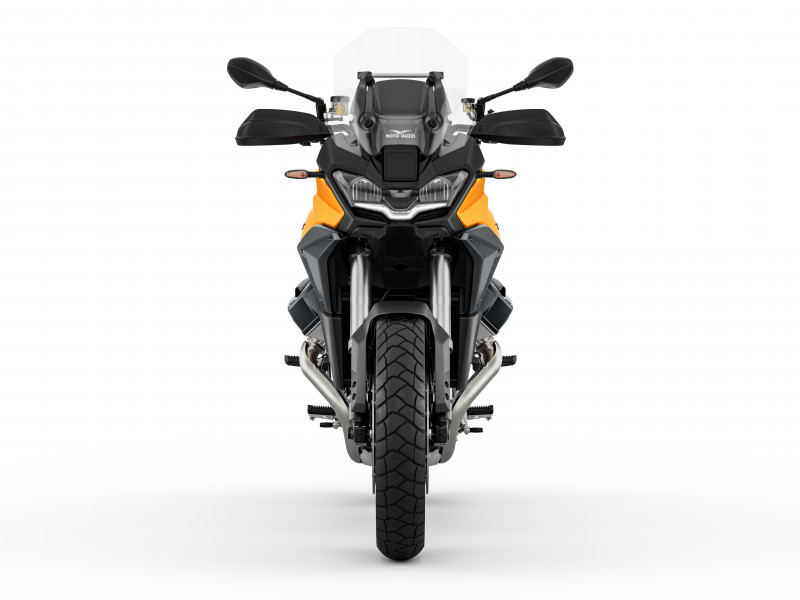 Chaque élément de la Stelvio reflète l'héritage Moto Guzzi, de son moteur V-Twin "Compact Block" à son gras oscillant unilatéral unique, en passant par ses feux de jour en forme d'aigle. Chaque détail est pensé pour donner vie à cette moto, solide, compact et puissante.